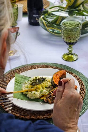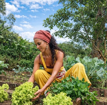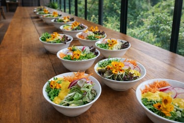 Nossa gastronomia é plant-based e orgânica, valorizando biodiversidade, território e sazonalidade. Cada refeição se conecta ao propósito do encontro e ao cuidado com o planeta, fortalecendo pequenos produtores e redes agroecológicas.